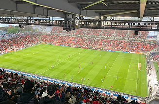 Provided on-site safety and high-angle rescue coverage for elevated stadium installations.